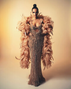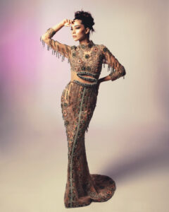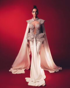 Nabil Younes, bekannt für seine meisterhafte Handwerkskunst und sein Gespür für Luxus, präsentierte eine Kollektion, die die königliche Aura der Queen perfekt einfing. Mit kunstvollen Stickereien, opulenten Stoffen und atemberaubenden Details setzte die Kollektion neue Maßstäbe in der Welt der königlichen Mode.
